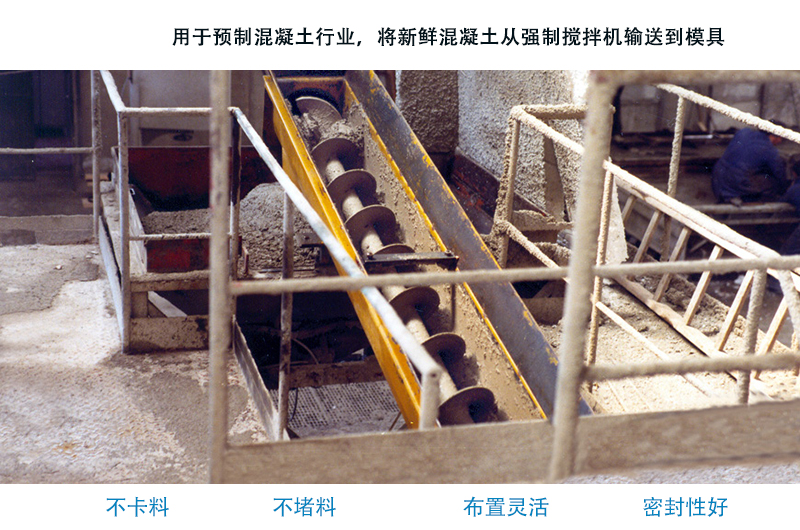 混凝土螺旋輸送機專為從料倉或混凝土攪拌站的(de)其他存儲區域輸送(sòng)水泥和類似散裝固(gù)體而設計,與(yǔ)其他輸送機不同,混凝土螺旋輸送機可避免混凝土離析(xī)並確(què)保均勻連續的卸料,為了保持混凝土均勻和減少吸收的驅(qū)動力(lì),進料端的攪拌槳是可調的,通過改變槳葉的角度,可以改變混凝土的(de)通過率。