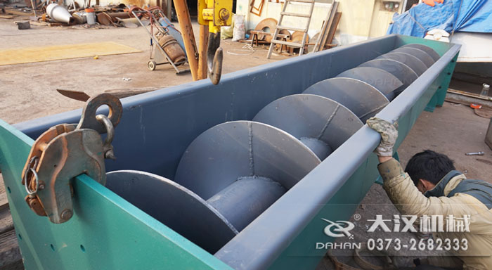 U型螺旋輸送機工作時(shí),電機帶動旋(xuán)轉的螺旋葉片將物料推移而進行(háng)輸送,螺(luó)旋輸送機旋轉軸上焊的螺旋(xuán)葉片(piàn),葉片的麵型(xíng)根據輸送物料的(de)不同有實體麵型、帶(dài)式麵型、葉片麵型等型式。使物料不與螺旋輸送機葉片一起旋轉的力是物料自身重量和螺旋輸送機(jī)機殼對物料的摩擦阻力(lì)。