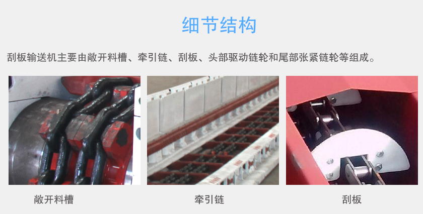 刮板(bǎn)輸送機主(zhǔ)要由敞開料(liào)槽、牽引鏈、刮板、頭部驅動鏈輪和尾部張緊鏈輪等組成(chéng)。