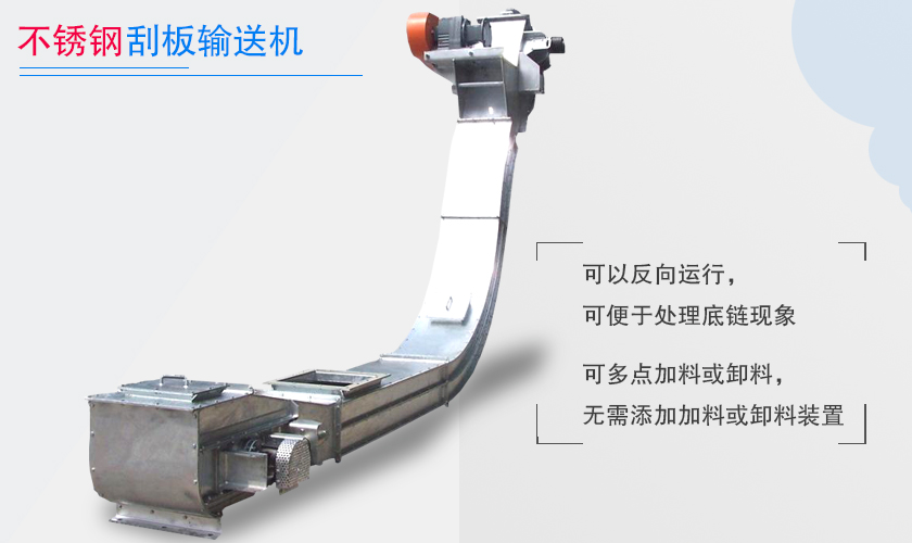 牽引鏈繞過頭、尾鏈輪構成閉合環路,物料(liào)可選用上分支或下分支(zhī)任意輸送,也可用兩分(fèn)支同時輸送,牽引鏈(liàn)設計多為圓環鏈較多。采用(yòng)一根牽引鏈與刮板中部(bù)聯接,也可用兩根牽引鏈與(yǔ)刮板兩端聯接,刮板的形狀有梯形、長方形或長(zhǎng)條形三種,分固(gù)定式和移置式兩種形態。
