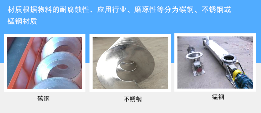 無軸螺(luó)旋(xuán)體:材質為不鏽鋼(gāng)或碳鋼。